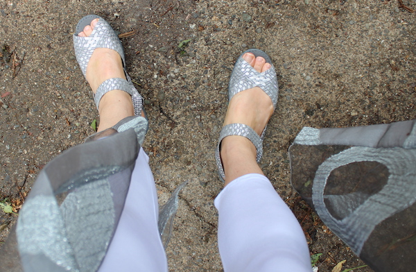 I now had an outfit for a heat wave, but it needed accessories. To complete the ensemble, I bought a pair of silver Bernie Mev wedge sandals and a white hat, large enough to act as a parasol. I sent a pic of the hat to Margy, but told her that it was too big for my suitcase. She replied that I must buy that hat and hand carry it on the plane!